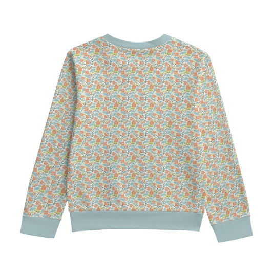 Vampire Art Kids' 100% Cotton Round Neck Sweatshirt | 310GSM Cotton - Orange Flowers