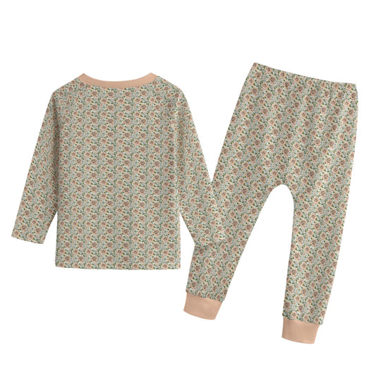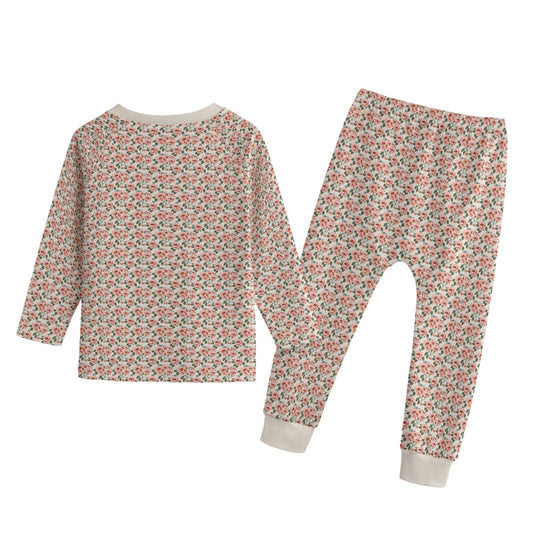 Vampire Art Kids' Retro Floral Knitted Fleece Pyjama Set - Salmon Pink Roses