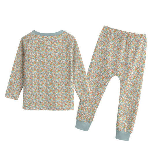 Vampire Art Kids' Retro Floral Knitted Fleece Pyjama Set - Orange Flowers