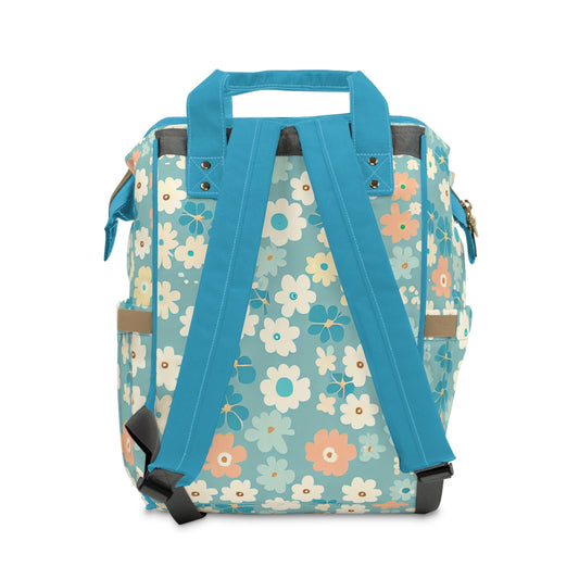Vampire Art Multifunctional Baby Diaper Backpack Changing Bag - Seventies Flowers Blue