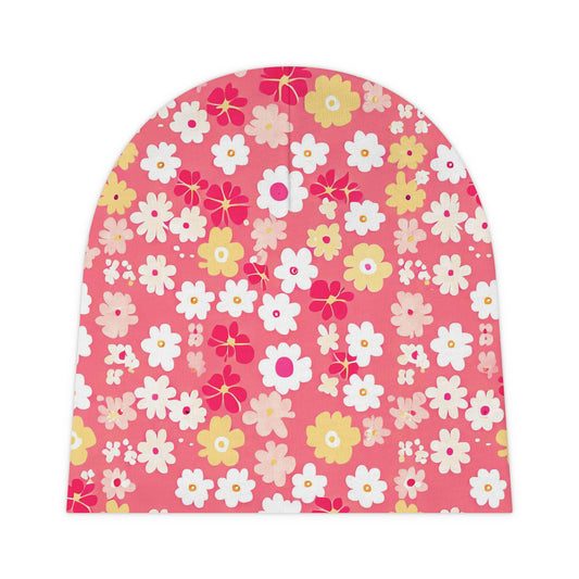 Vampire Art Retro Seventies Pink Flowers Baby Beanie Hat