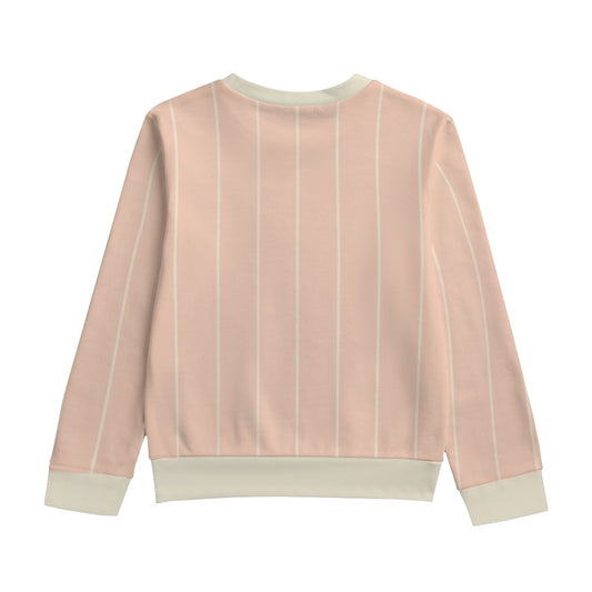 Vampire Art Retro Salmon Pink Striped Kids Round Neck Sweatshirt | 310GSM Cotton