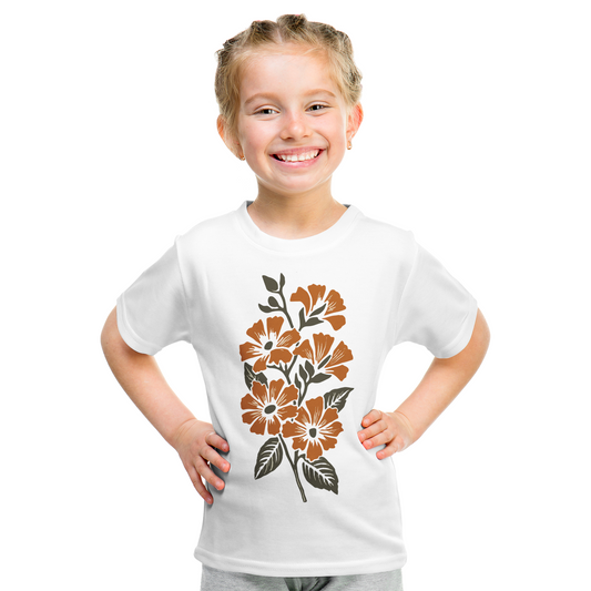 Vampire Art Retro Sixties Surf Orange Flowers 100% Cotton Short Sleeve Kids' T-shirt