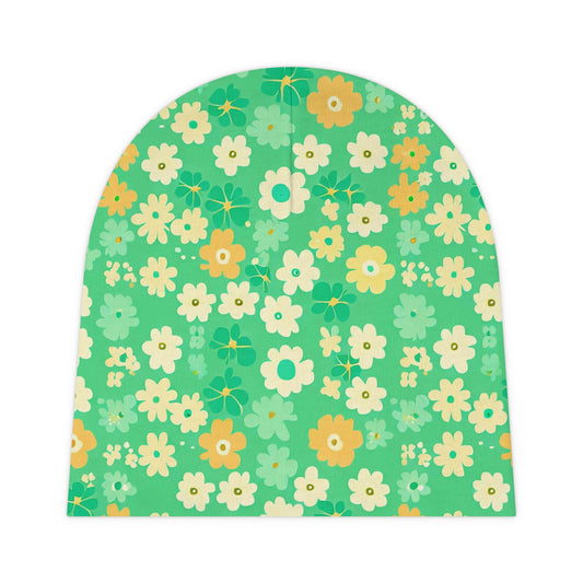 Vampire Art Retro Seventies Green Flowers Baby Beanie Hat