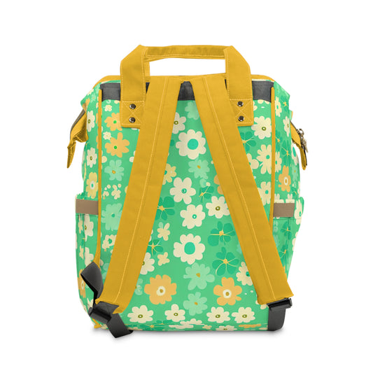 Vampire Art Multifunctional Baby Diaper Backpack Changing Bag - Seventies Flowers Green