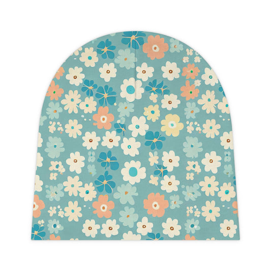 Vampire Art Retro Seventies Blue Flowers Baby Beanie Hat