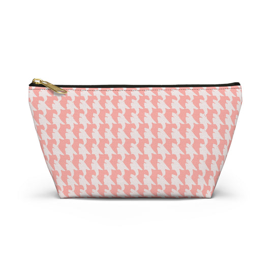 Vampire Art Preppy Grunge Houndstooth Sixties Pattern in Coral Pink and White Pencil Case Accessory Pouch w T-bottom