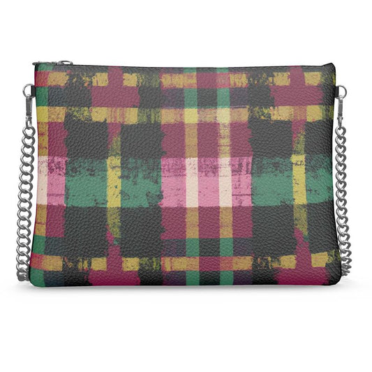 Vampire Art Grunge Scottish Tartan Crossbody Bag with Chain