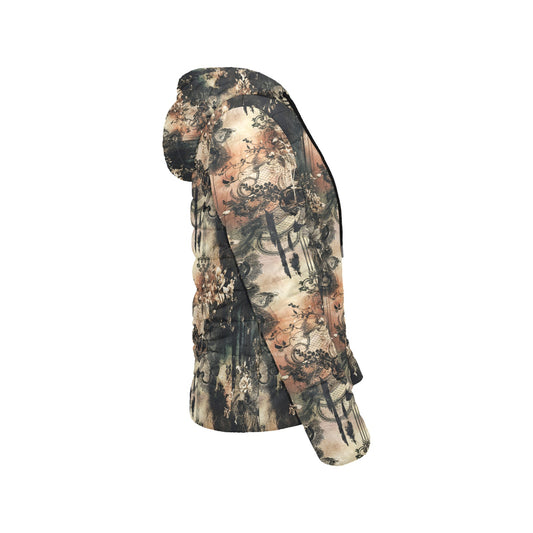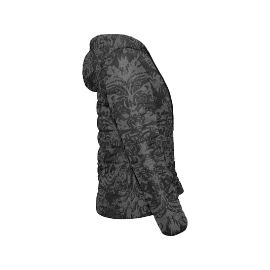 Vampire Art Urban Gothic Women's Padded Hooded Jacket - Black Grunge Damask