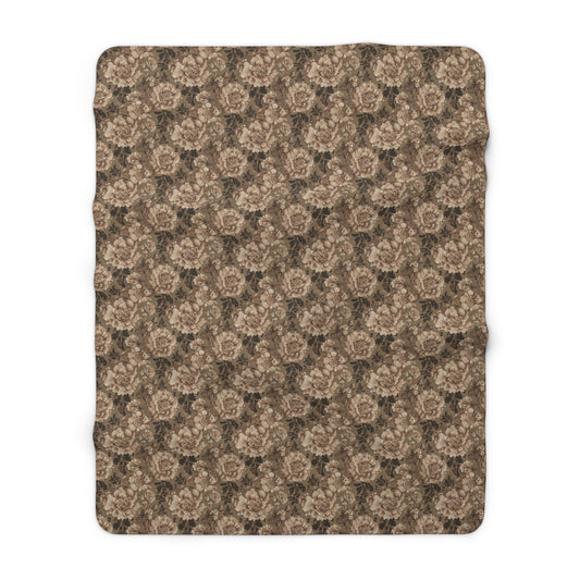 Vampire Art Nostalgic Dream Luxury Sherpa Fleece Blanket - Grunge Florals in Brown