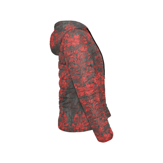 Vampire Art Urban Gothic Women's Padded Hooded Jacket - Grunge Red Lace and Roses