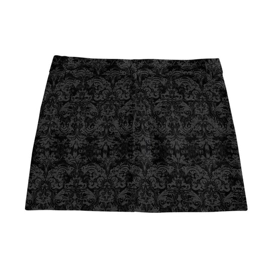 Vampire Art Retro Charm Mini Denim Skirt - Grunge Damask in Black