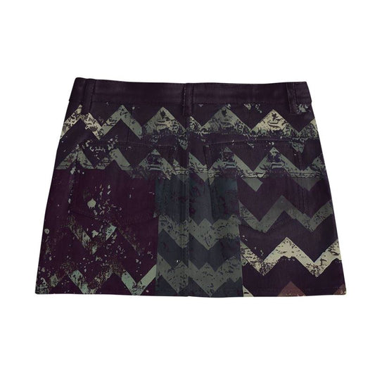 Vampire Art Retro Charm Mini Denim Skirt - Grunge Herringbone