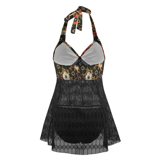 Vampire Art Goth Halter Two Piece Mesh Tankini Swimsuit - Grunge Flowers