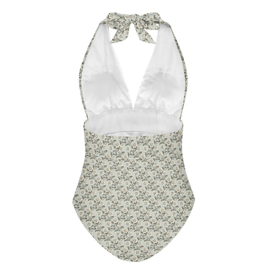 Vampire Art Retro Victorian Flowers Deep V high-waisted One-piece Swimsuit