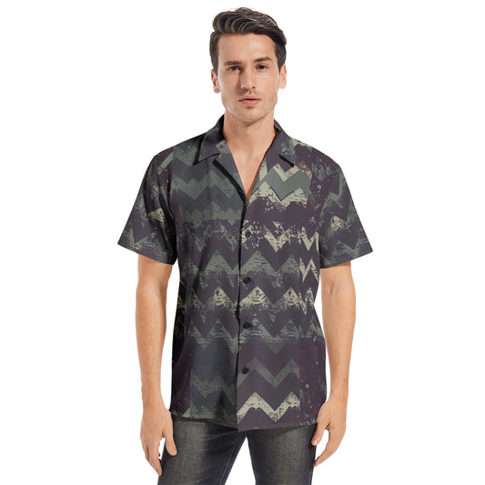 Vampire Art Grunge Patchwork Men's Short Sleeve 100% Premium Cotton Shirt - Black Herringbone