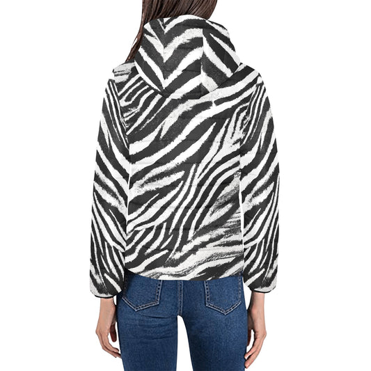Vampire Art Grunge Animal Patterned Women's Padded Hooded Jacket - Grunge Black and White Zebra