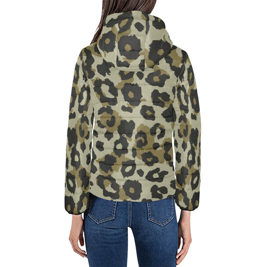 Vampire Art Grunge Animal Patterned Women's Padded Hooded Jacket - Grunge Khaki Leopard