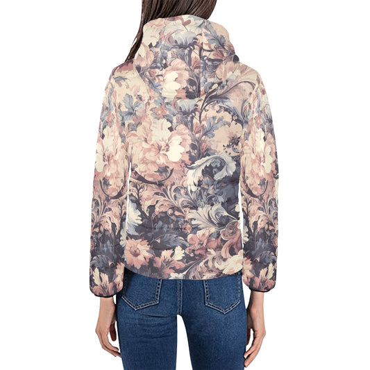 Vampire Art Grunge Victorian Flowers in Delicate Colours Women's Padded Hooded Jacket