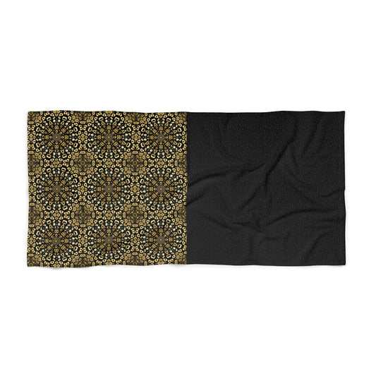 Vampire Art Goth Velvet Black Damask vs Psychedelic Golden Leopard Double Bonus Beach Towel