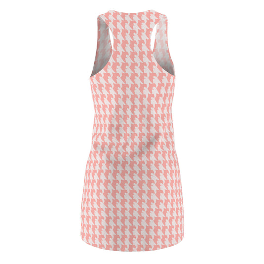 Vampire Art Grunge Goth Emo Preppy Coral Pink and White Houndstooth Women's Racerback Dress