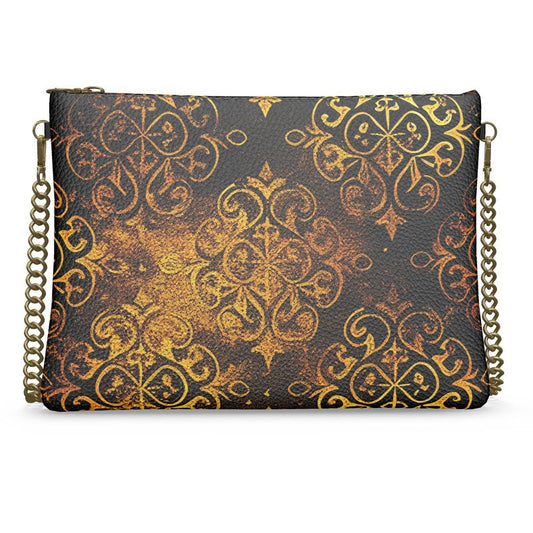 Vampire Art Grunge Gold Damask Crossbody Bag With Chain