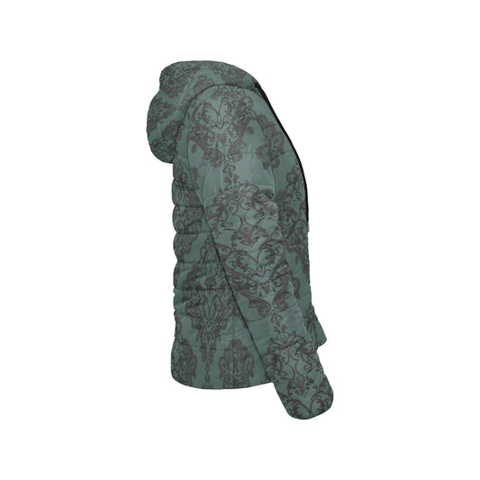 Vampire Art Urban Gothic Women's Padded Hooded Jacket - Grunge Lace in Green, Charcoal and Cream