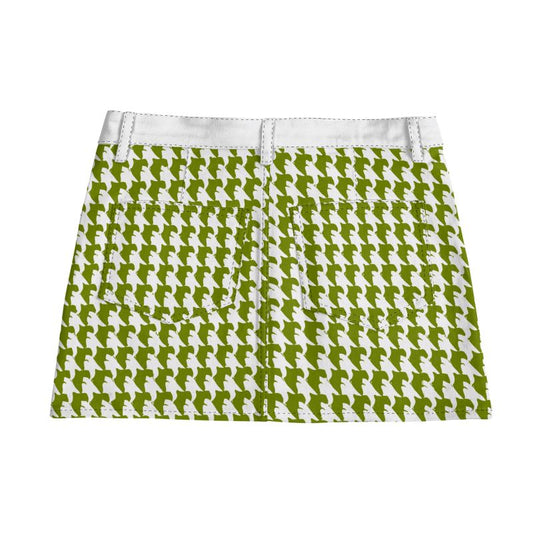 Vampire Art Retro Charm Mini Denim Skirt - Green Houndstooth