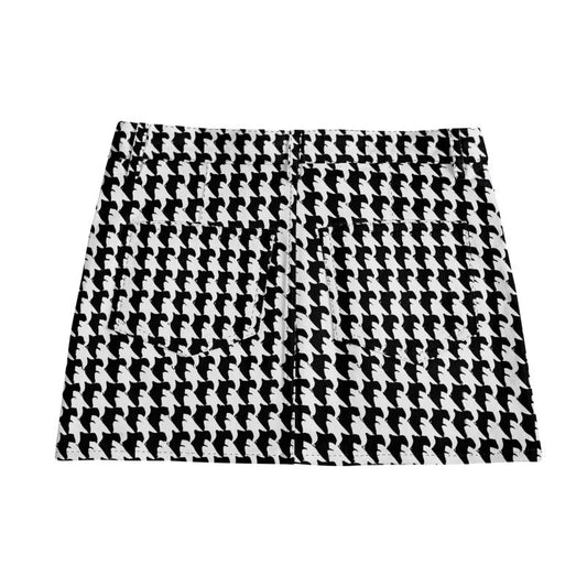 Vampire Art Retro Charm Mini Denim Skirt - Black and Charcoal Houndstooth