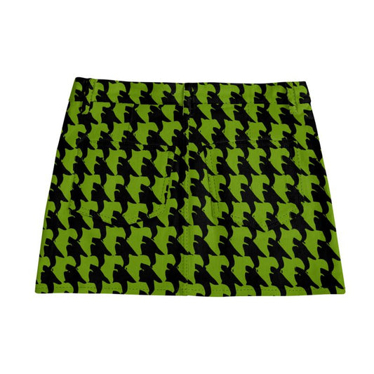 Vampire Art Retro Charm Mini Denim Skirt - Houndstooth in Black and Green