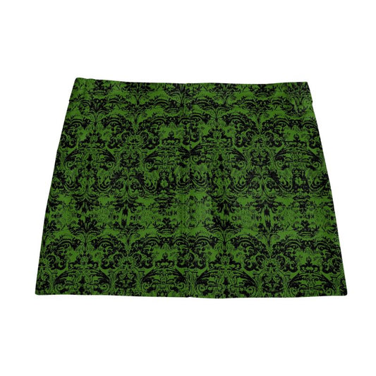 Vampire Art Retro Charm Mini Denim Skirt - Goth Damask in Green