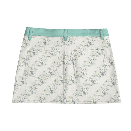 Vampire Art Retro Charm Mini Denim Skirt - Victorian Flowers