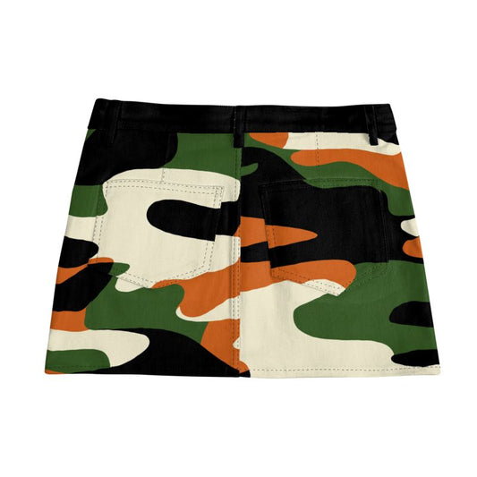 Vampire Art Retro Charm Mini Denim Skirt - 1980s Camo with Orange