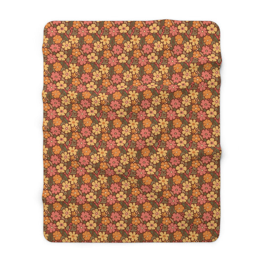 Vampire Art Nostalgic Dream Luxury Sherpa Fleece Blanket - Retro Boho Hippie Florals in Brown