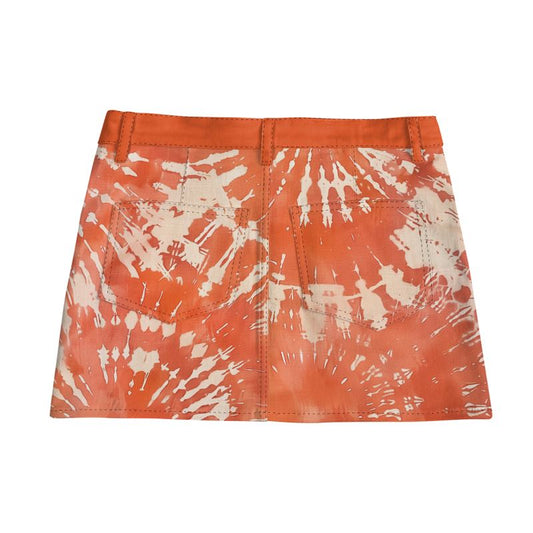 Vampire Art Boho Festival Tie-Dye Mini Denim Skirt - Coral