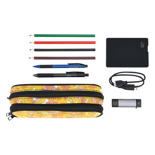 Vampire Art Studio Caddy: Deluxe Pencil Pouch - Hippie Boho Florals in Yellow