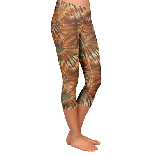 Vampire Art Mystic Tie-Dye Capri Leggings - Earthy tones