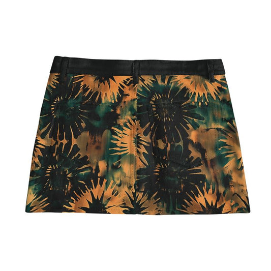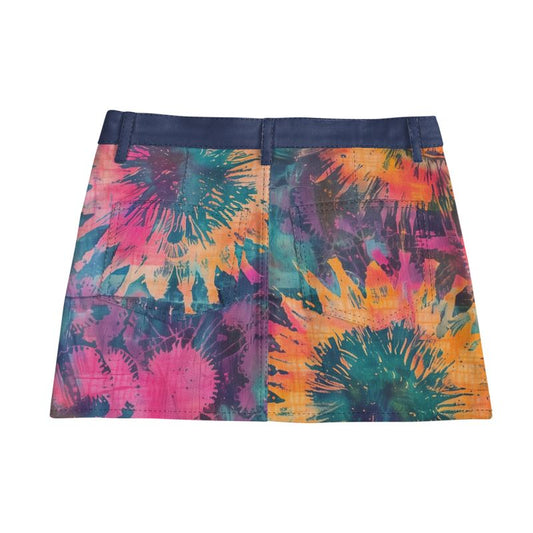 Vampire Art Boho Festival Tie-Dye Mini Denim Skirt - Summer Field