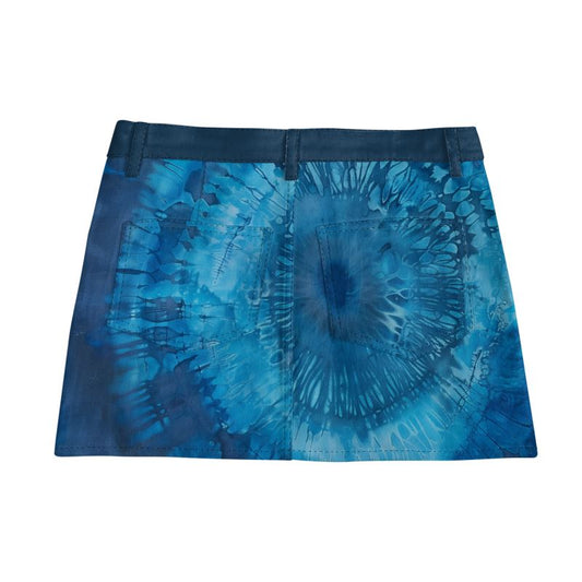 Vampire Art Boho Festival Tie-Dye Mini Denim Skirt - Deep Blue
