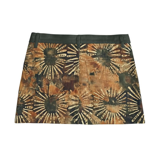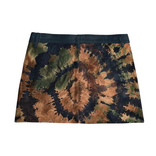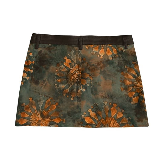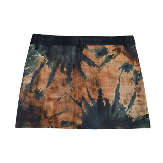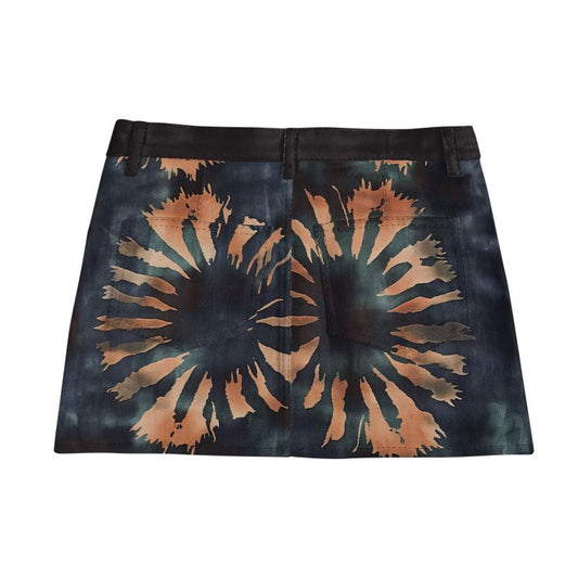 Vampire Art Boho Festival Tie-Dye Mini Denim Skirt - Earth