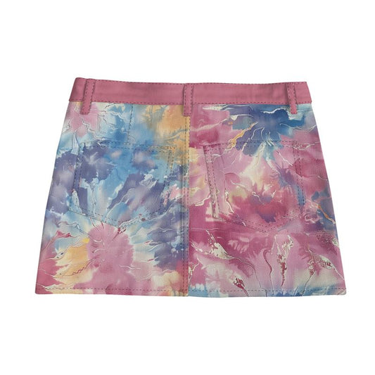 Vampire Art Boho Festival Tie-Dye Mini Denim Skirt - Candy Floss