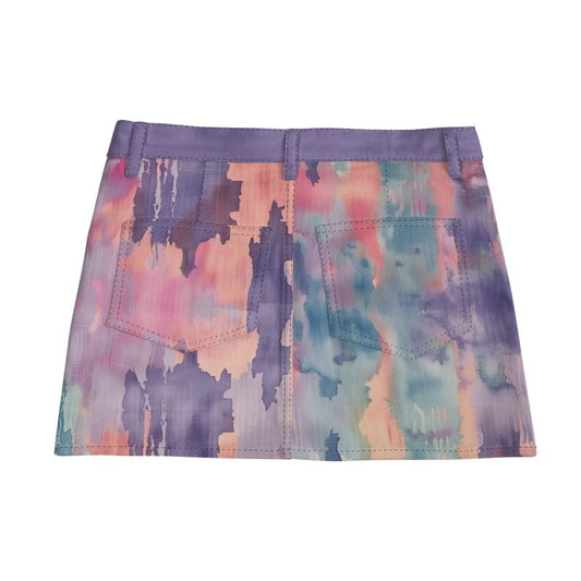 Vampire Art Boho Festival Tie-Dye Mini Denim Skirt - Faded Watercolours