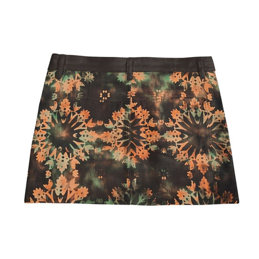 Vampire Art Boho Festival Tie-Dye Mini Denim Skirt - Forest Dream