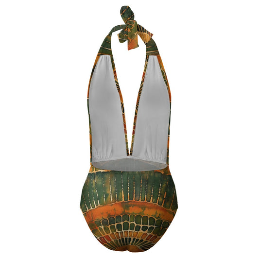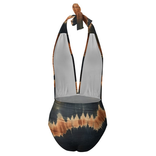 Vampire Art Hippie Tie-Dye Motif Festival Boho One Piece Halter Swimsuit - Ethnic