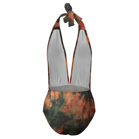 Vampire Art Hippie Tie-Dye Motif Festival Boho One Piece Halter Swimsuit - Hellfire