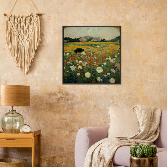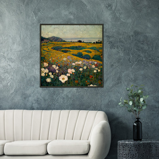 Vampire Art Vintage-style Malibu Fields with White Flowers Premium Matte Paper Metal Framed Poster