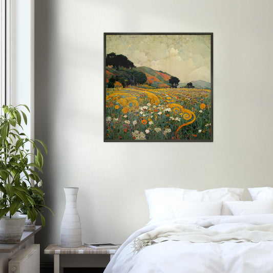 Vampire Art Vintage-style Malibu Fields with Flowers and Twirls Premium Matte Paper Metal Framed Poster