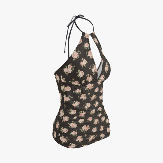 Vampire Art Retro Halter Two-Piece Tankini Swimsuit - Vintage Roses in Black