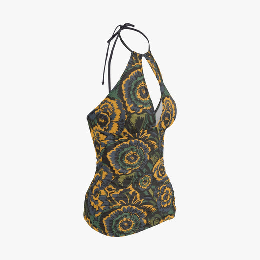 Vampire Art Retro Halter Two-Piece Tankini Swimsuit - Seventies Dark Florals