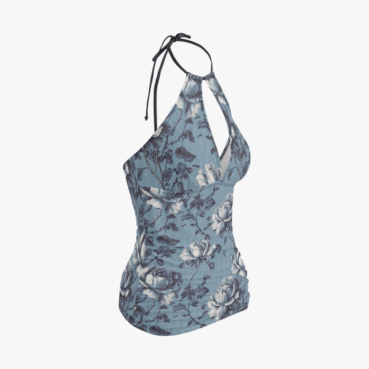 Vampire Art Retro Halter Two-Piece Tankini Swimsuit - Blue Roses